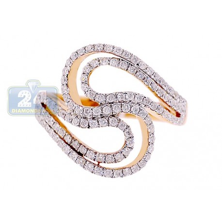 14K Yellow Gold 0.75 ct Diamond Womens Bypass Layered Ring