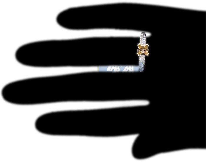 Elegant, stylish and sophisticated! Our custom made bridal setting is professionally handmade to fit for your round shaped precious or semi-precious stone! It is beautifully crafted in classic 14k yellow gold with highly polished finish, and expertly handset with 0.77 carat of sparkling round cut diamonds. These are G-H color and SI1-SI2 clarity brilliants. What a gorgeous expression of true love!