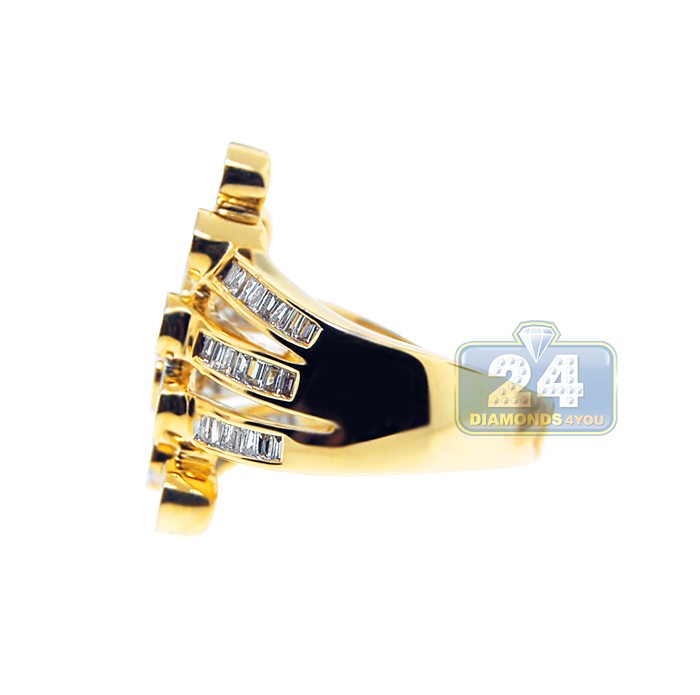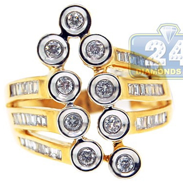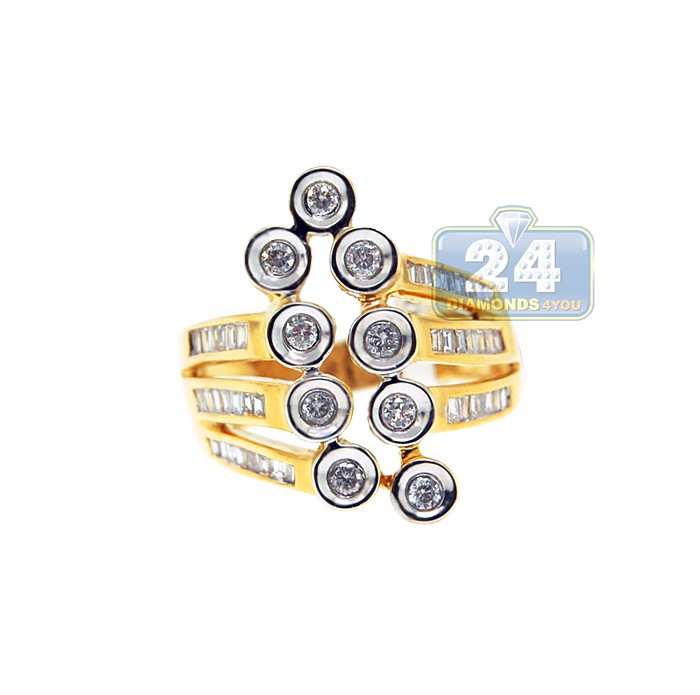 14K Yellow Gold 0.80 ct Baguette Round Diamond Abstract Ring