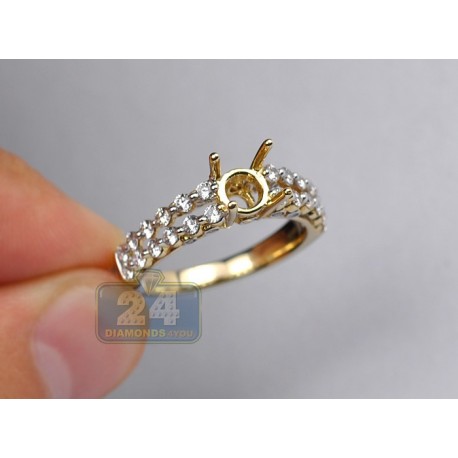 14K Yellow Gold 0.81 ct Two Row Diamond Engagement Ring Setting