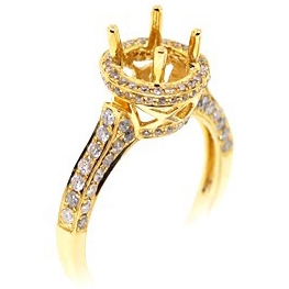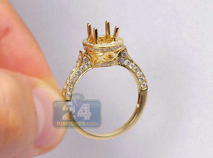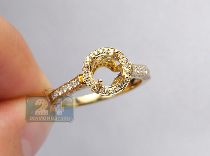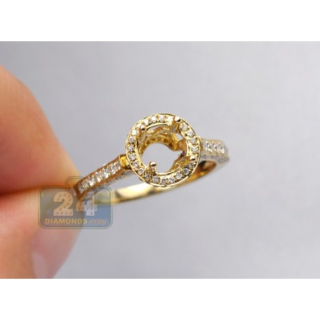 14K Yellow Gold Diamond Halo Vintage Semi Mount Engagement Ring