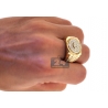 Make a long-lasting impression wearing this spectacular diamond ring for men! Artfully handmade of warm 14 karat yellow gold, it's polished for smooth shiny finish. The head of diamond pinky ring has an original fluted style bezel with 1.00 carat of lustrous white round brilliant-cut genuine diamonds. The widest part of the piece measures 17 mm, and the shank is 5 mm. Featuring a stylish stepped shank, our men's diamond ring will illuminate your finger!