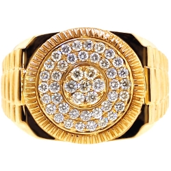 14K Yellow Gold 1.00 ct Diamond Fluted Bezel Mens Ring
