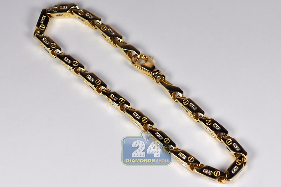 14K Yellow Gold 1.09 ct Diamond Bar Link Mens Bracelet