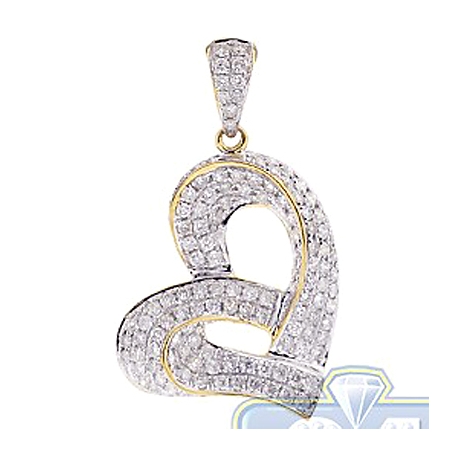14K Yellow Gold 1.21 ct Diamond Open Heart Womens Pendant