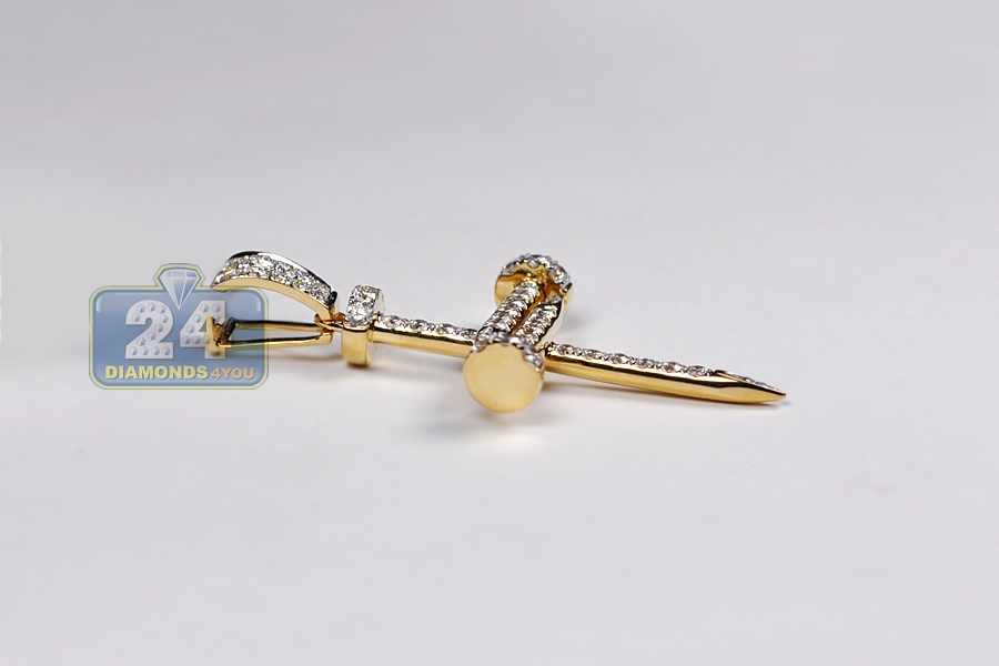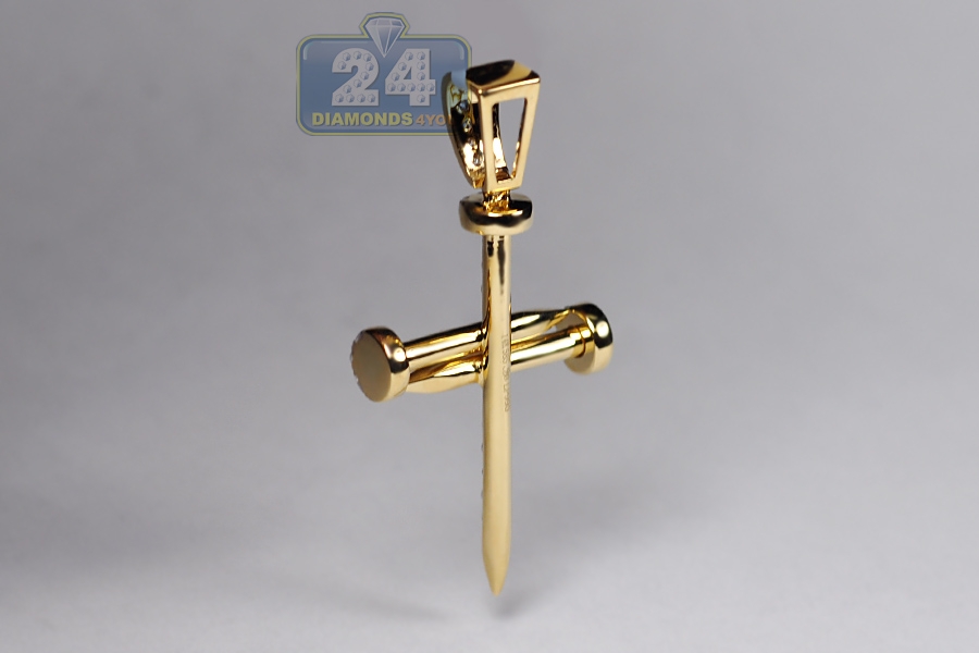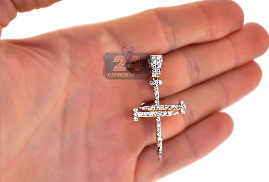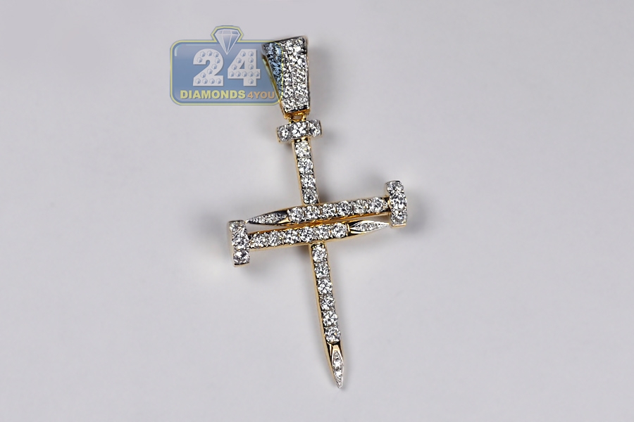 14K Yellow Gold 1.22 ct Diamond Mens Nail Cross Pendant