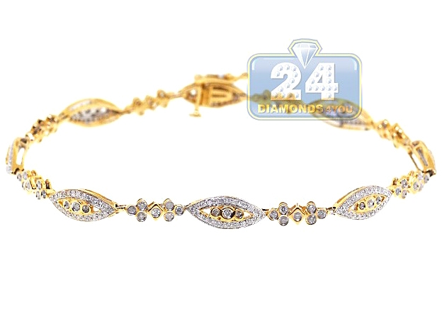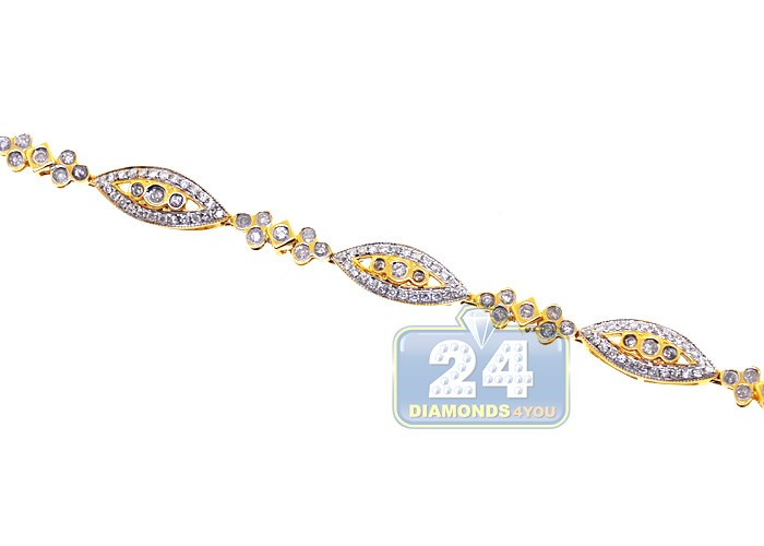 14K Yellow Gold 1.23 ct Diamond Evil Eye Womens Tennis Bracelet