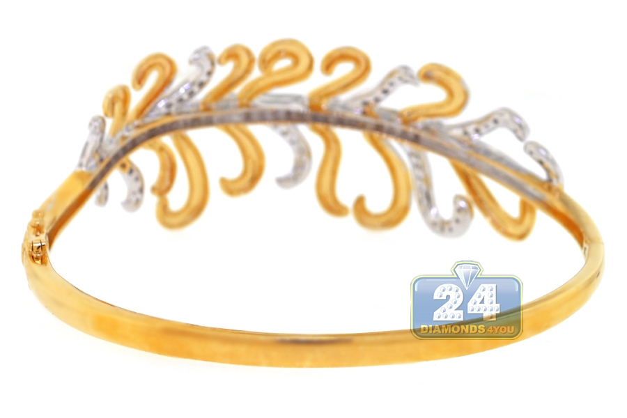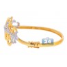 14K Yellow Gold 1.24 ct Diamond Flower Womens Bangle Bracelet
