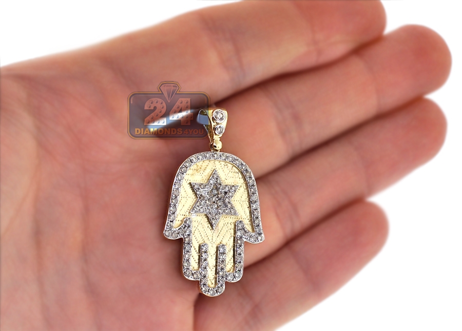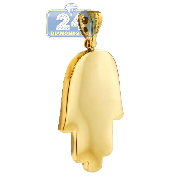 14K Yellow Gold 1.31 ct Diamond Hamsa Hand Mens Pendant