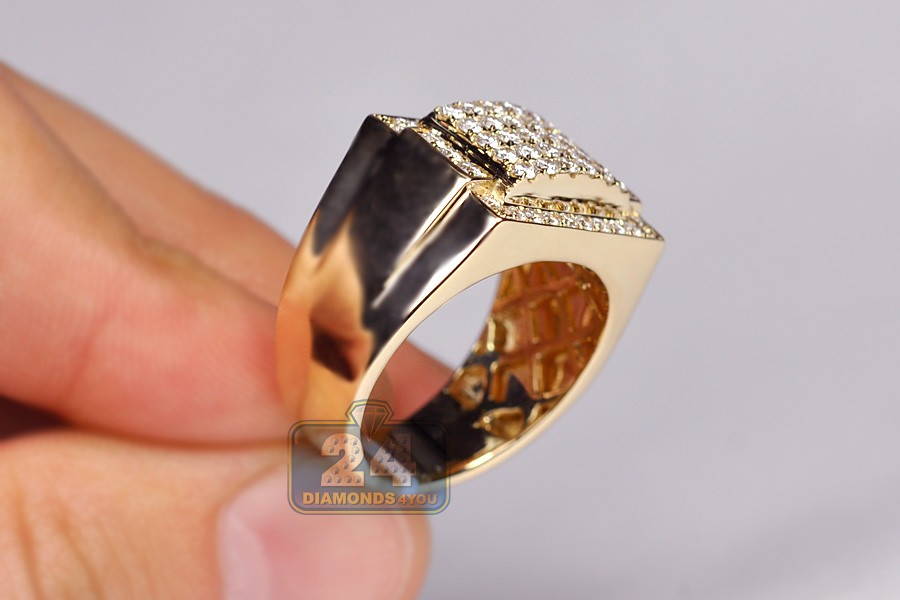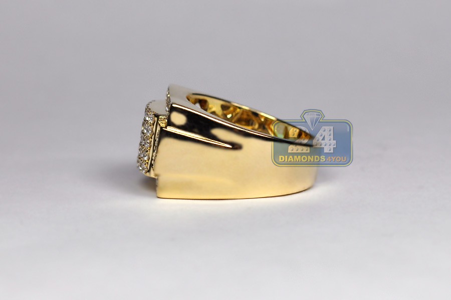 A wholesome reflection of his handsome personality and stylish taste, this diamond ring offers absolutely rich design! The piece is beautifully handcrafted from classic 14k yellow gold with high polished finish, and artfully encrusted with 1.31 carat of icy white round brilliant-cut diamonds. This is a ring he is sure to wear proudly every day!