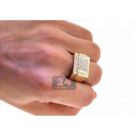 14K Yellow Gold 1.31 ct Diamond Classic Rectangle Signet Ring