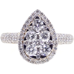 A statement on elegance and glamour, our lady's diamond cluster ring displays a marvelous sense of style! Professionally created from lustrous 14k yellow gold, it is set with 1.33 carat of icy white round brilliant-cut genuine diamonds. This pear-shaped ring is so pleasing and sparkling!