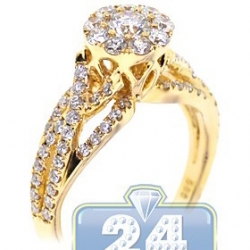 Our stunning engagement ring is a truly magnificent symbol of love! Impressive antique styled design features crossover elements on the shoulders. The ring is masterly handmade of classic 14k yellow gold with shiny polished finish, and gorgeously encrusted with 70 pieces of icy white round cut diamonds totaling 1.36 carat. Each stone is hand picked to match, has SI1-SI2 clarity with G-H color. What a smart choice if you are looking for quality at the affordable price!
