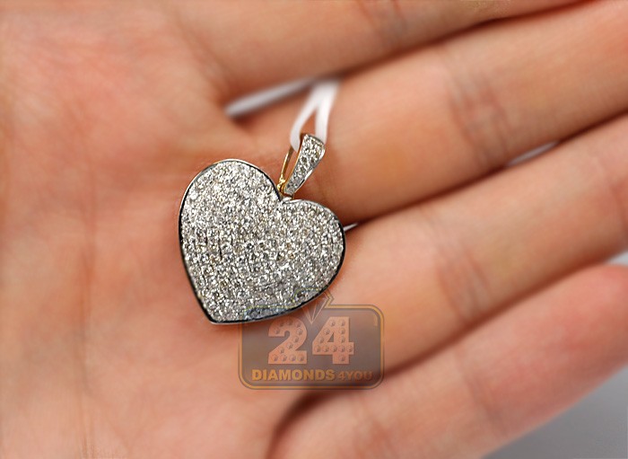 You're looking at the diamond heart pendant, a gorgeous reminder to always lead with love! It's skilfully made of warm 14 karat yellow gold with high-polished shiny finish. The piece of jewelry is paved with 1.49 carat of gleaming white round brilliant-cut natural diamonds (SI1-SI2 clarity, G-H color). Our women's diamond pendant features 26 mm in dangling height and 22 mm in width. Add a special meaning to your jewelry collection!