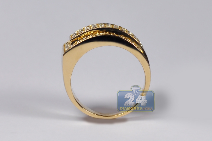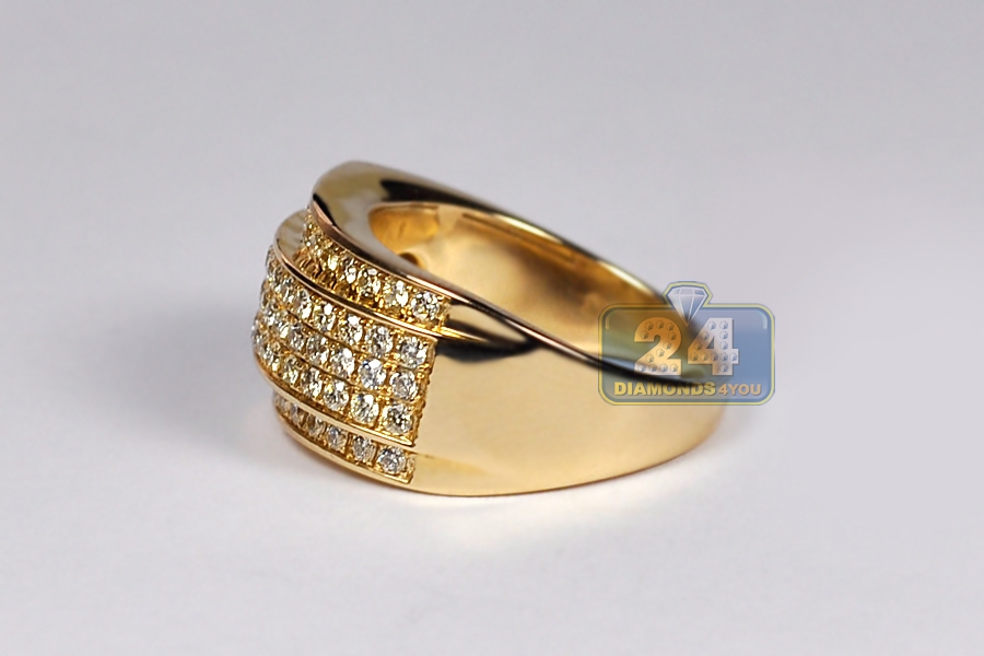 14K Yellow Gold 1.55 ct Diamond Slanted Band Ring 12 mm