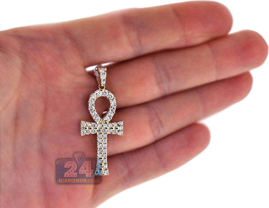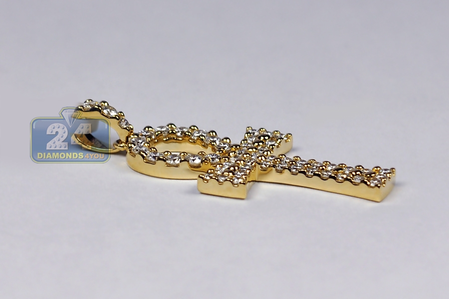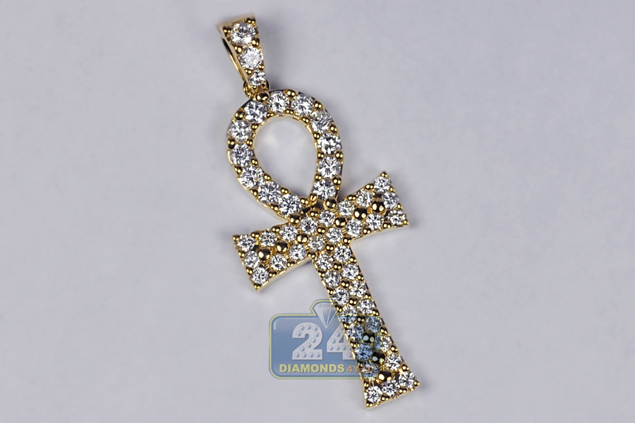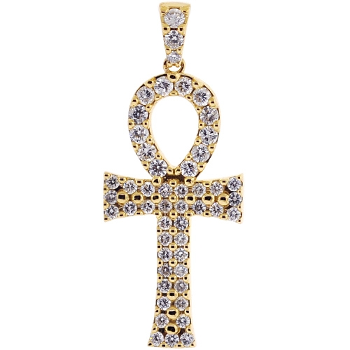 14K Yellow Gold 1.64 ct Diamond Ankh Cross Mens Pendant