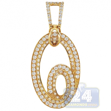 The design of this diamond drop pendant represents two ovals of different sizes that masterly created from solid 14 karat yellow gold, and precisely polished for ultra smooth finish. The oval pendant has 1.70 carat of gleaming white round brilliant-cut diamonds (SI1-SI2 clarity, G-H color). Our women's diamond pendant measures 42 mm in total height and 19 mm in width. Diversify your jewelry collection with this amazing diamond oval pendant!