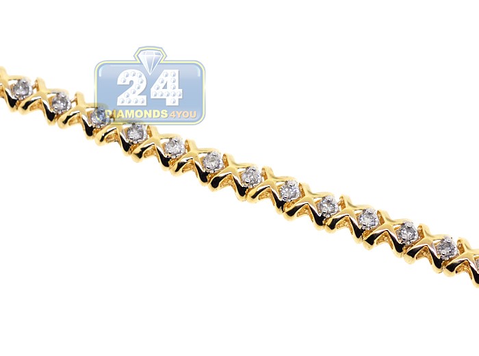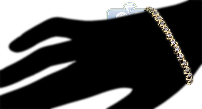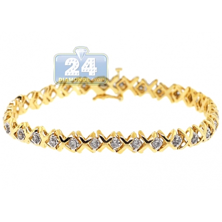 14K Yellow Gold 1.70 ct Diamond X Link Womens Tennis Bracelet