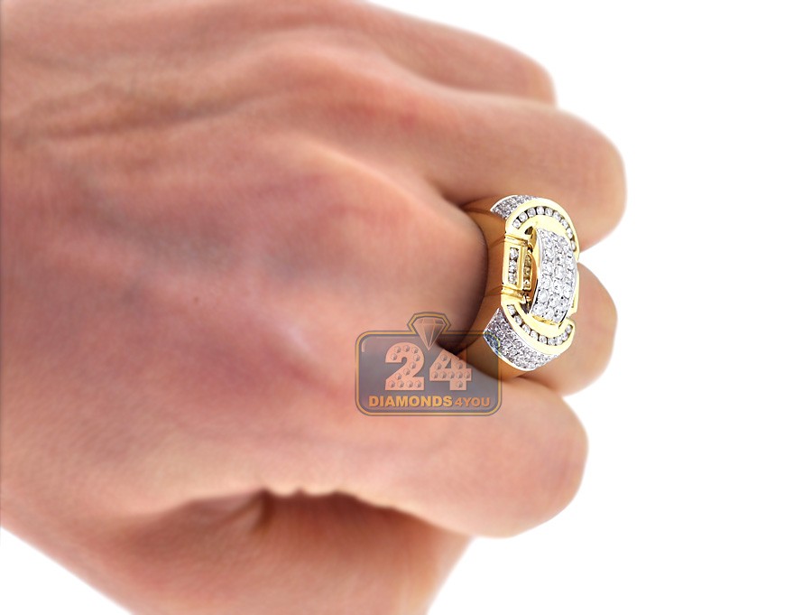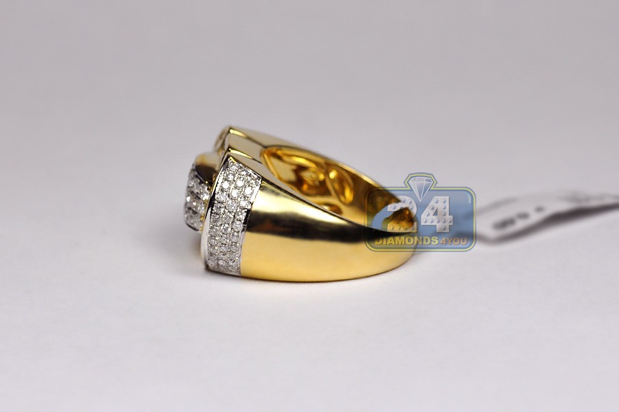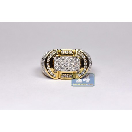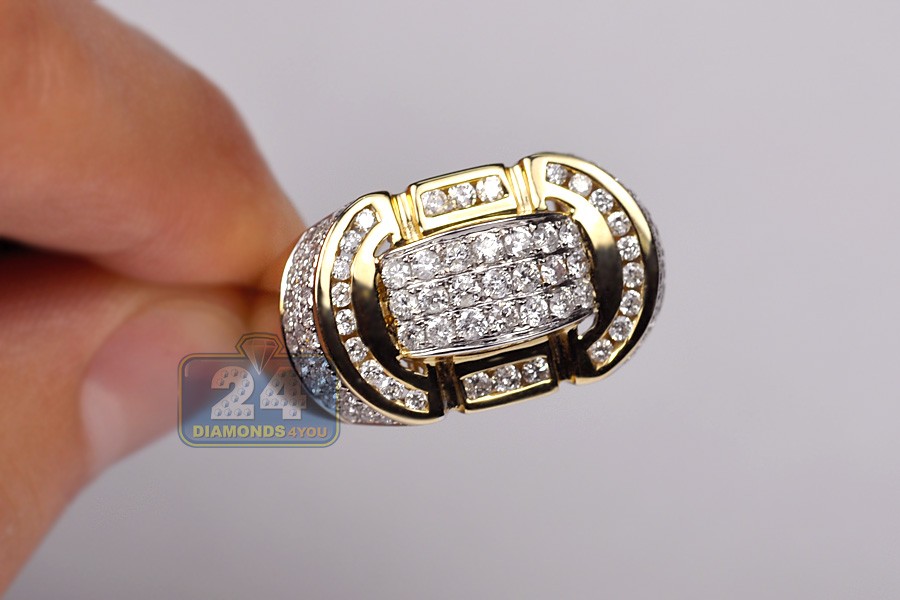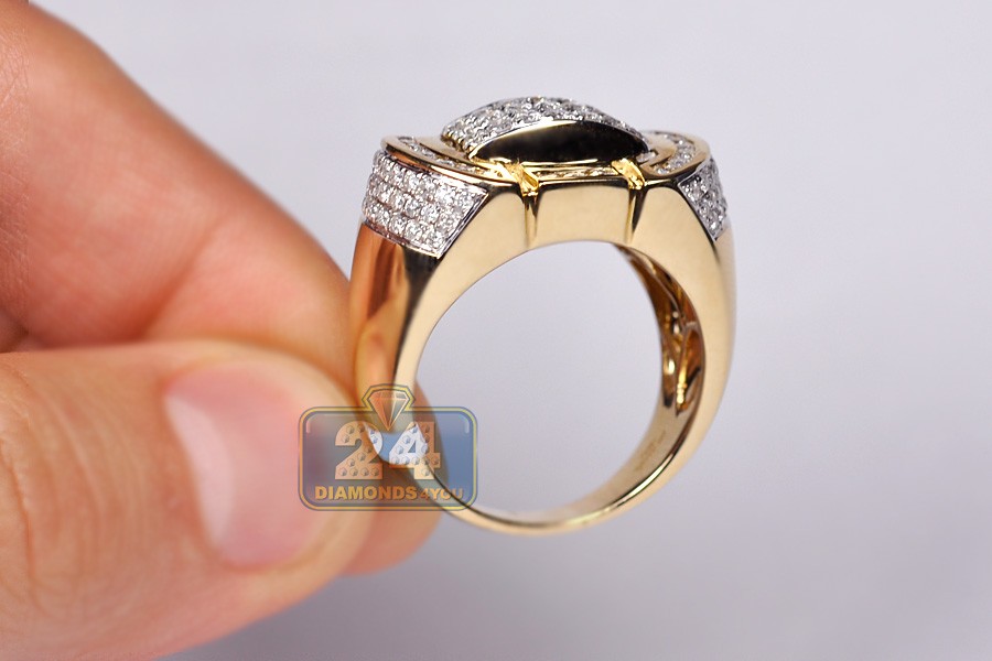 14K Yellow Gold 1.71 ct Diamond Mens Oval Signet Ring