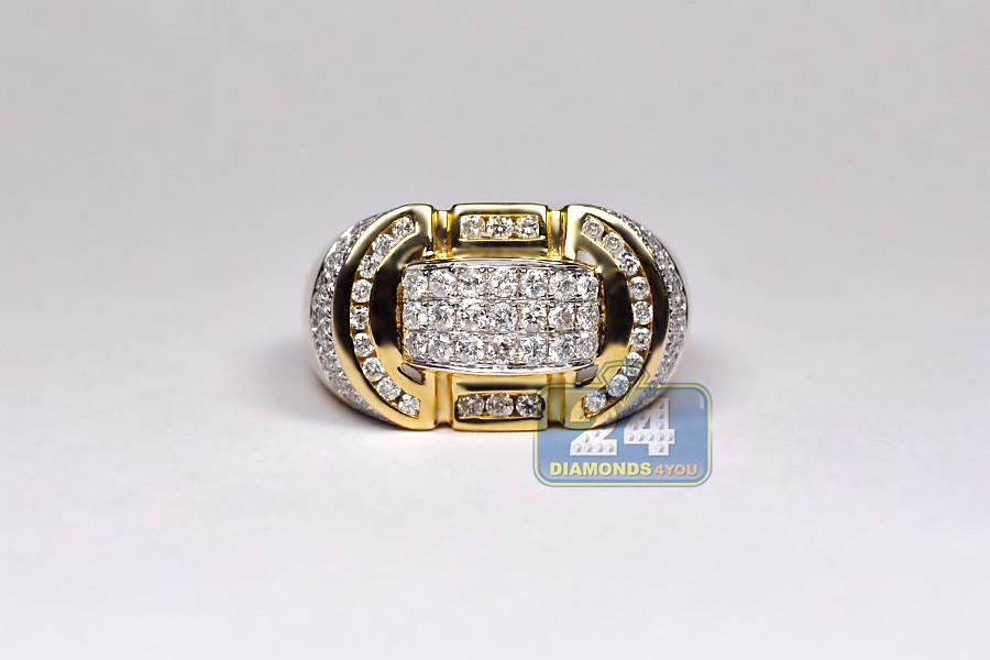 Handsomely shaped and high quality made! Our diamond signet is expertly handmade of warm 14k yellow gold with highly polished finish, and handset with icy white round cut diamonds totaling 1.71 carat. The brilliants are absolutely natural, with G-H color and SI1-SI2, beautifully sparkling and eye clean. Add this special accessory for your daily wear!