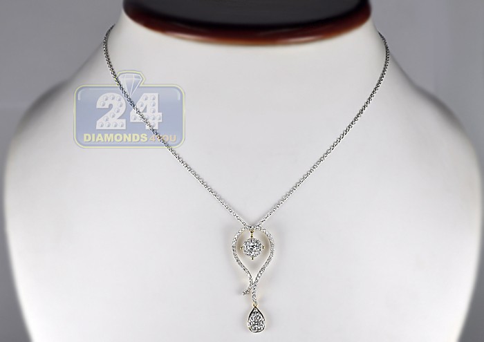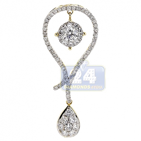 Adorn your neckline with this appealing diamond teardrop pendant! Artfully manufactured from warm 14 karat yellow gold, it features highly polished shiny finish with bright white rhodium accents. The dangling pendant is accented with 1.73 carat of icy white round brilliant-cut natural diamond. Our women's diamond pendant measures 41 mm in total height and 16 mm in width. Flawless look for anytime and any occasion!