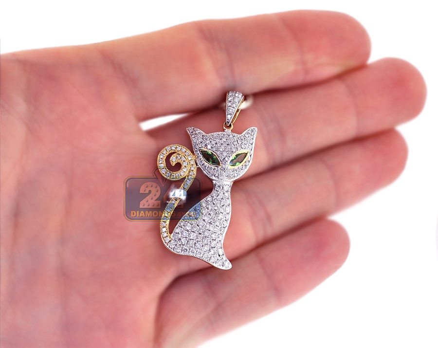 14K Yellow Gold 1.89 ct Diamond Cat Womens Pendant