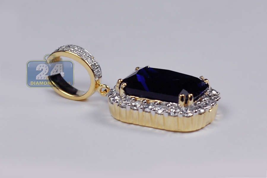 14K Yellow Gold 10.00 ct Blue Sapphire Diamond Mens Pendant