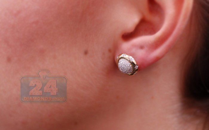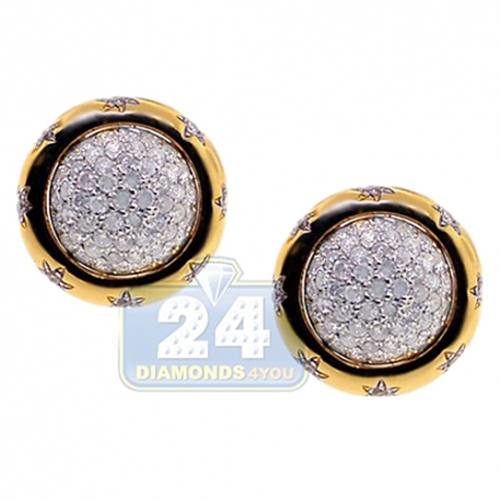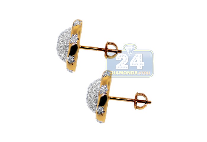 Add unique sparkle to your ears with our diamond stud earrings! Artfully created from warm 14 karat yellow gold, they're polished for ultra smooth feel. Our women's round studs are paved with 1.00 carat of icy white round-shaped genuine diamonds. The pair measures 13 mm in width, and amazed with diamond stars on the sides. They're also secured by user-friendly screw backs.