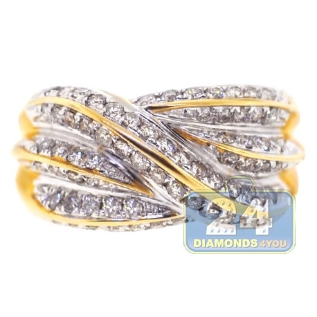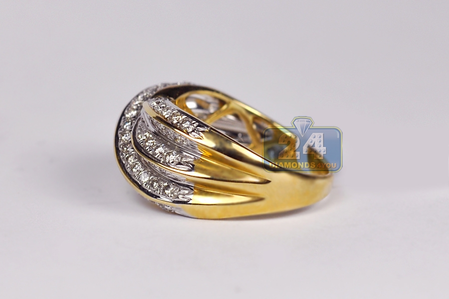 14K Yellow Gold 1.01 ct Diamond Womens Wave Ring