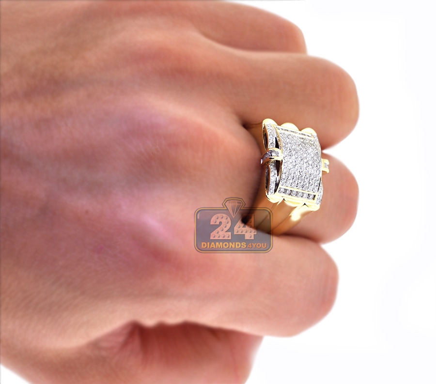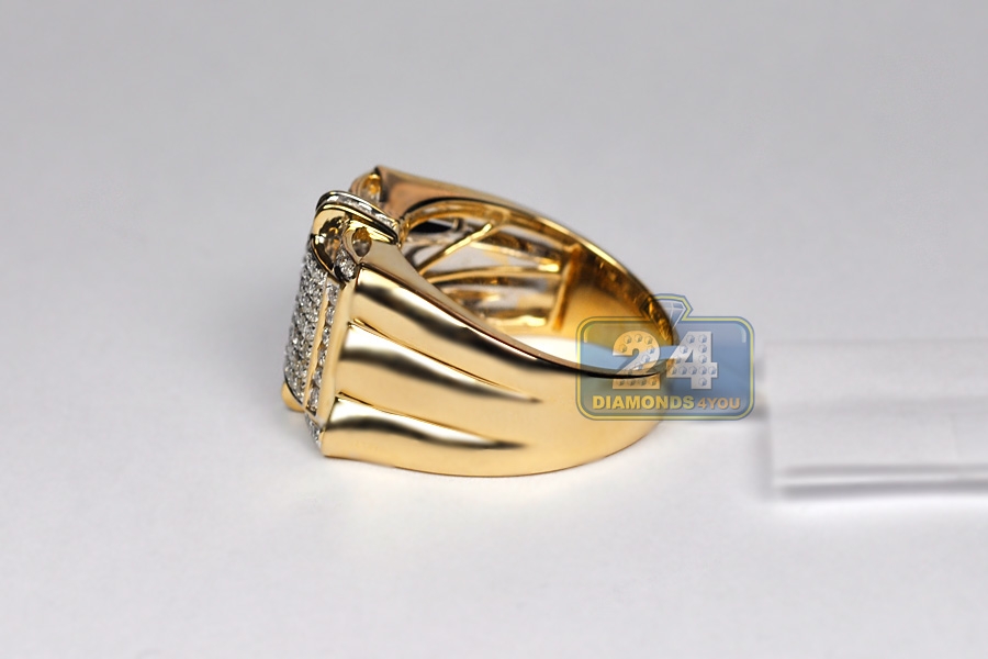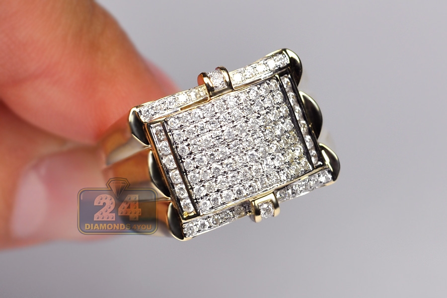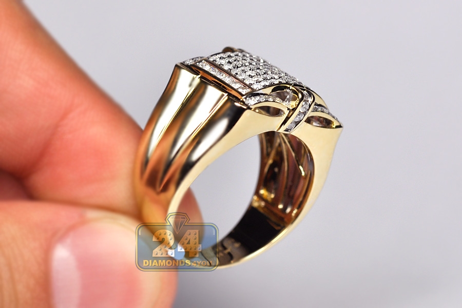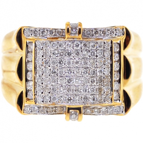 14K Yellow Gold 1.02 ct Diamond Pave Mens Ring