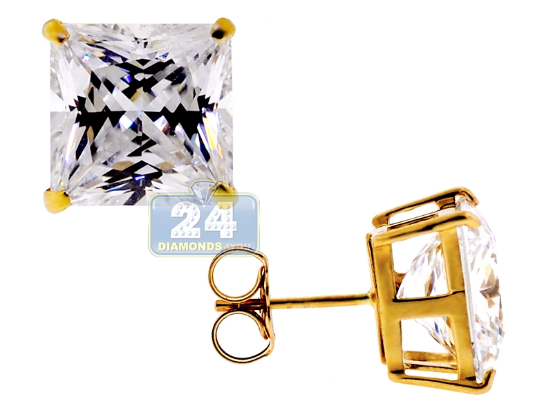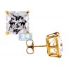 14K Yellow Gold 11.10 ct Princess CZ Push Back Stud Earrings
