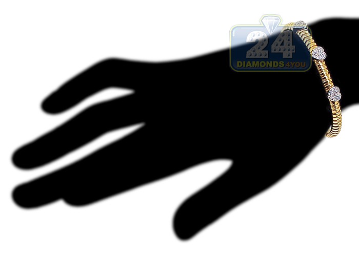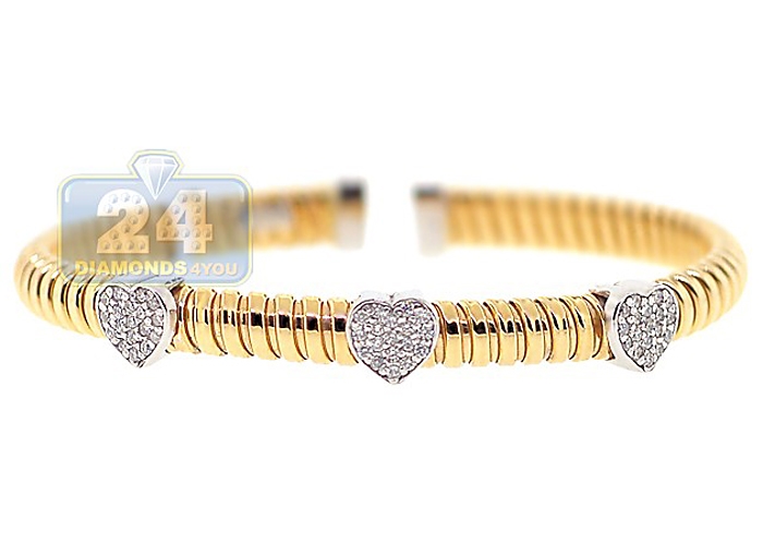 14K Yellow Gold 1.10 ct Diamond Heart Womens Cuff Bracelet