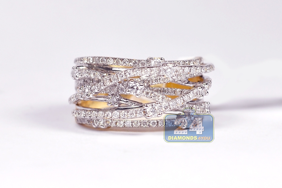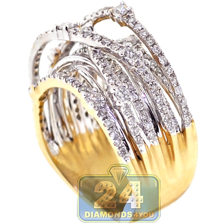 Fancy, stylish and sparkling! Our women's highway band is simply gorgeous! The ring features warming 14k yellow gold with high polished finish, and 1.24 carat of genuine round diamonds with SI1-SI2 clarity and G-H color. The brilliants are absolutely sparkling and eye clean. The detailed certificate/appraisal included.