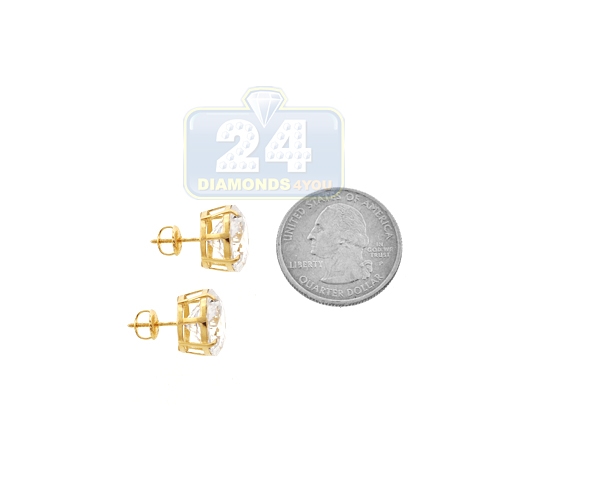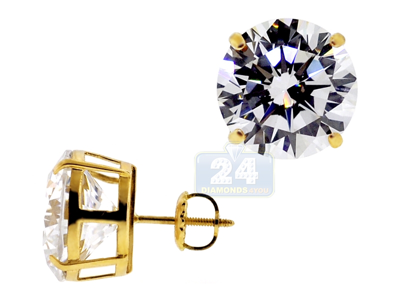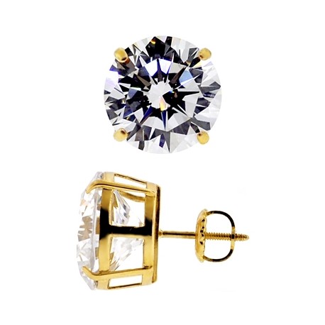 14K Yellow Gold 13 ct Round CZ Screw Stud Earrings 12 mm