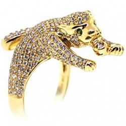 If you can't live without cats, our diamond panther ring is definitely for you! It features genuine materials and exceptional craftsmanship! This exquisite piece is handcrafted in warming 14k yellow gold with perfectly polished finish, and expertly encrusted with genuine green emeralds and 1.32 carats of icy white round-cut diamonds. The detailed certificate/appraisal included.