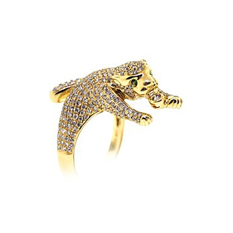 14K Yellow Gold 1.32 ct Diamond Womens Panther Cat Ring