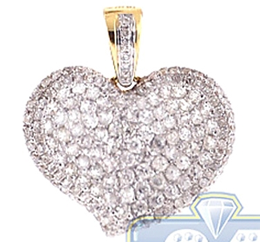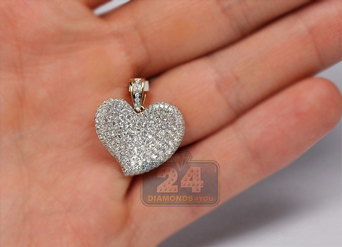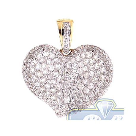 14K Yellow Gold 1.37 ct Diamond Pave Concave Heart Pendant