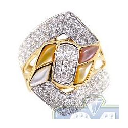 Fancy, stylish and truly sophisticated! This lady's floral inspired ring is masterly handmade of classic 14k yellow gold with highly polished finish, and gorgeously accented with 1.48 carat of natural white round cut diamonds as well as four multicolored opals in the center. Each brilliant is G-H color and SI1-SI2 clarity. Own something unique and extraordinary!
