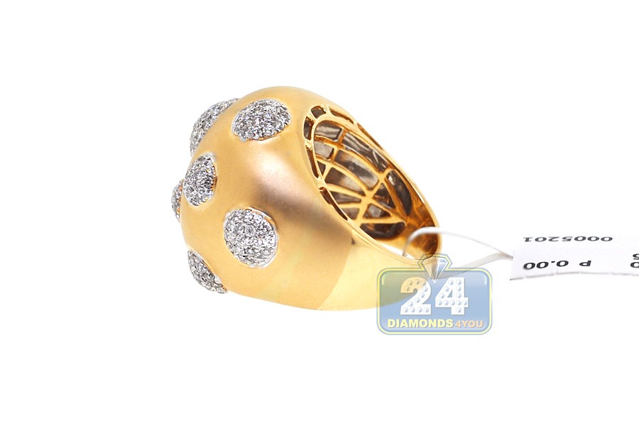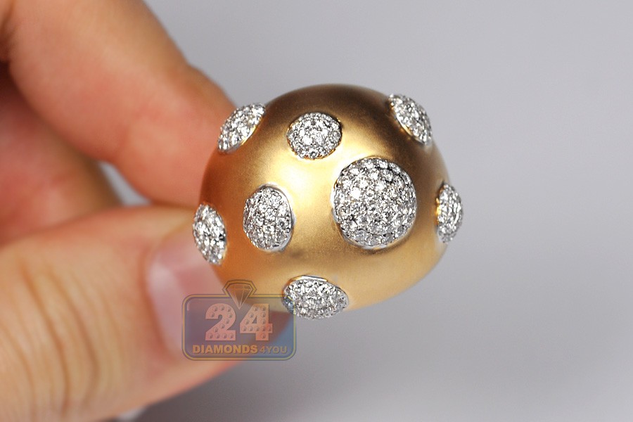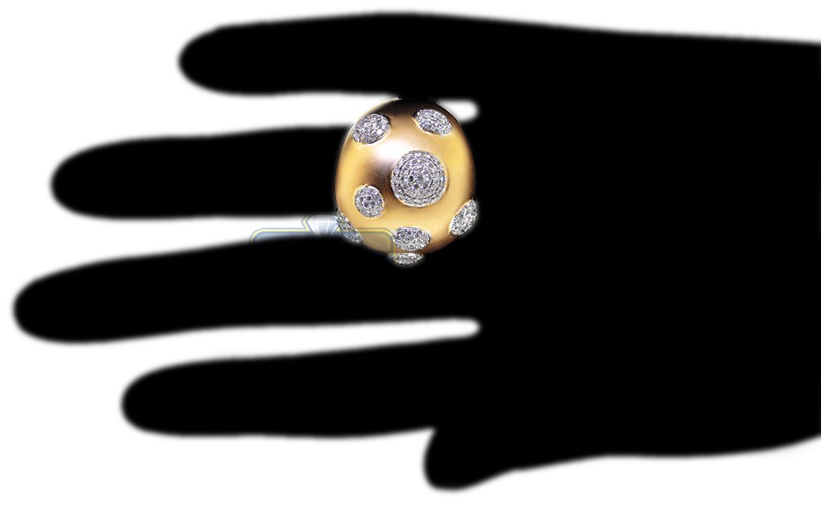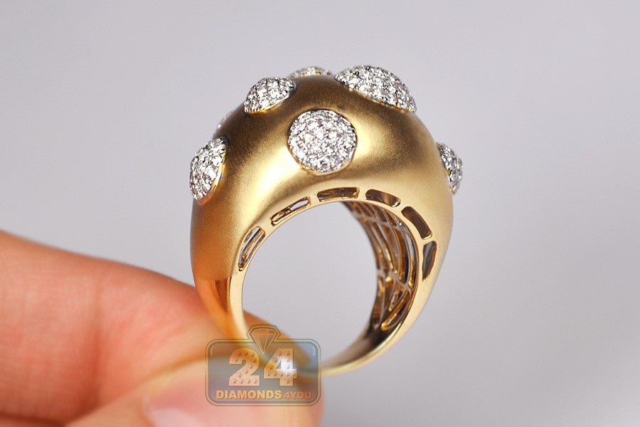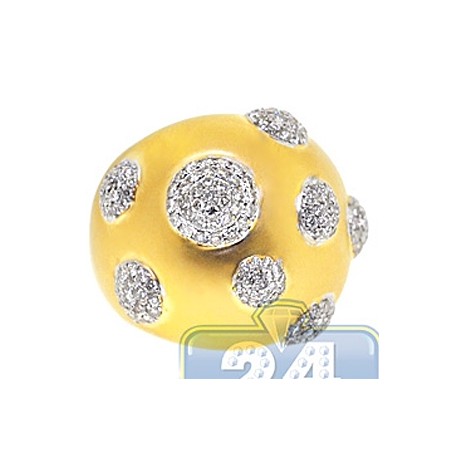 What a work of art! Our unique dome ring is like no other you have seen before! This jewel is skillfully crafted in sunny 14k yellow gold and has matte polished finish. Absolutely fancy round shaped spikes are encrusted all over the ring... each of them is handmade of genuine round cut diamonds weighting 1.66 carat in total. Each brilliant is icy white and eye clean, with G-H color and SI1-SI2 clarity for the best match and look. The exceptional design makes an extraordinary fashion statement!