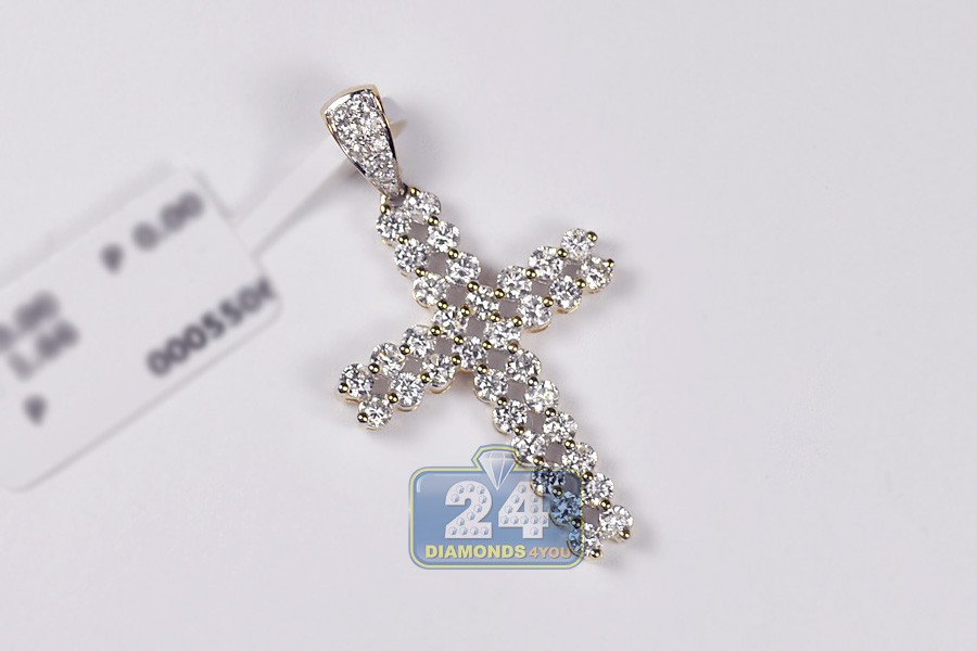 Complete your spiritual look with this diamond cross pendant! Gorgeously manufactured from solid 14k yellow gold, it's precisely polished for very shimmering finish. The religious cross pendant is 2 prong set with gleaming white round brilliant-cut natural diamonds weighting 1.71 carat. Our men's diamond pendant has total length of 37 mm and width of 21 mm. Express your faith with this elegant diamond cross!