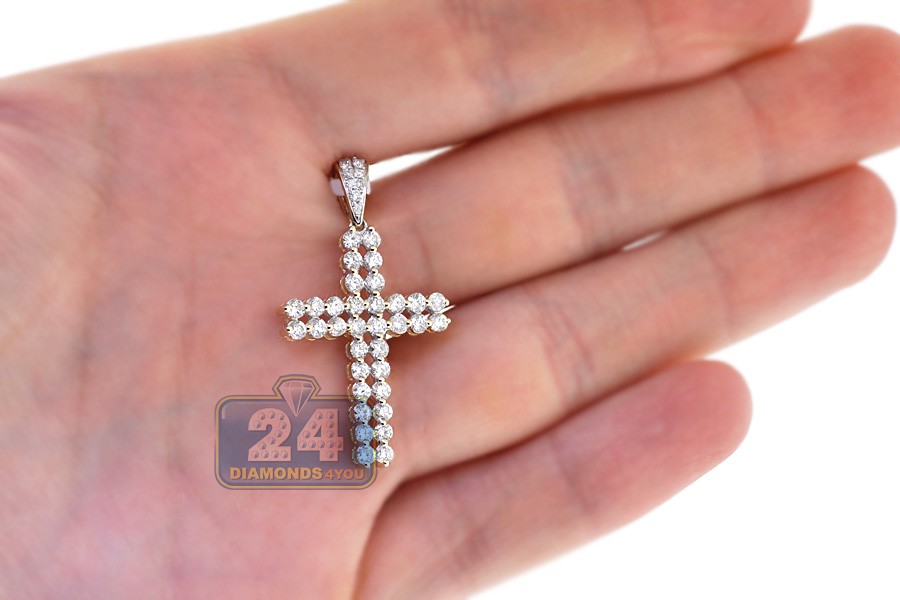 14K Yellow Gold 1.71 ct Two Row Diamond Cross Mens Pendant