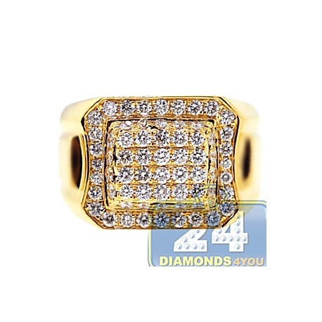 14K Yellow Gold 1.75 ct Diamond Mens Classic Signet Ring