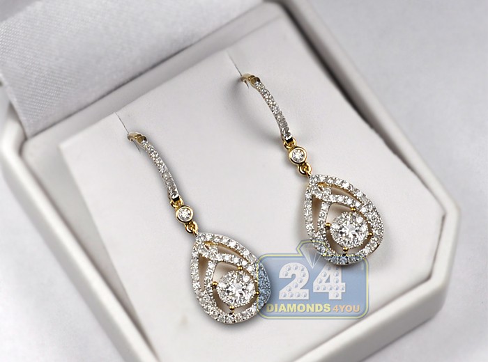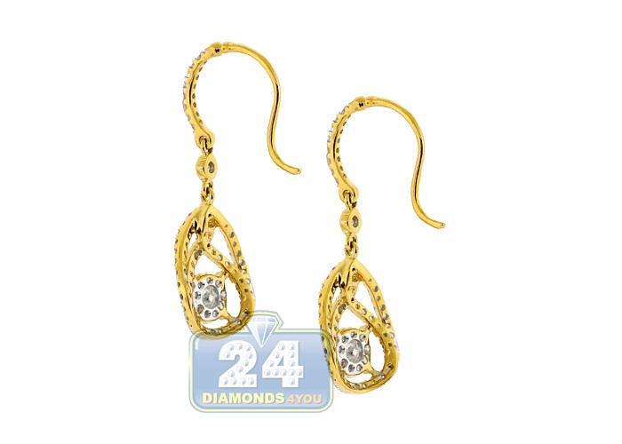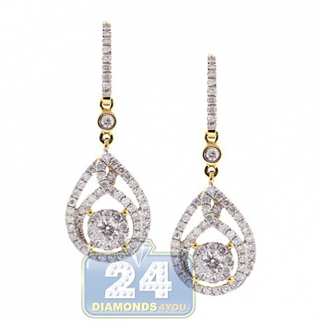 14K Yellow Gold 1.91 ct Diamond Womens Drop Hook Earrings