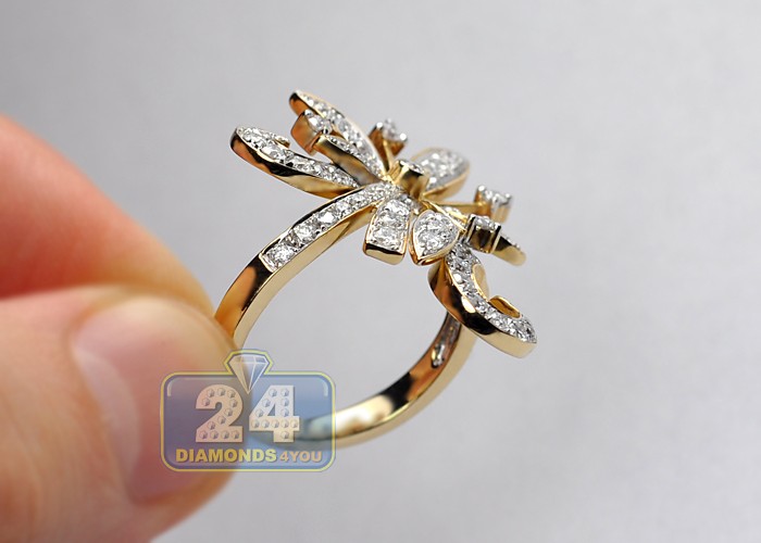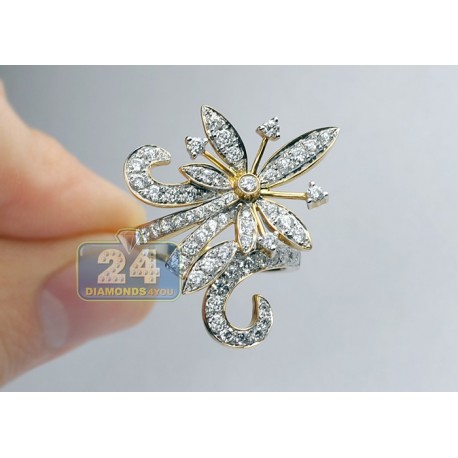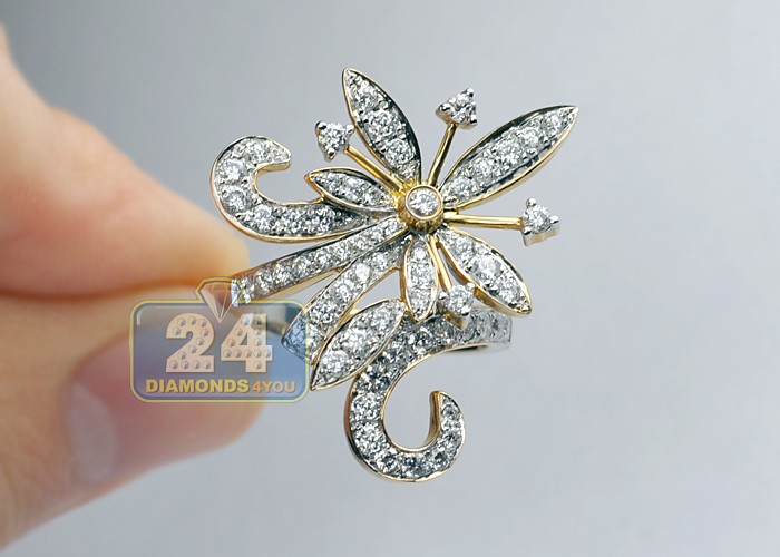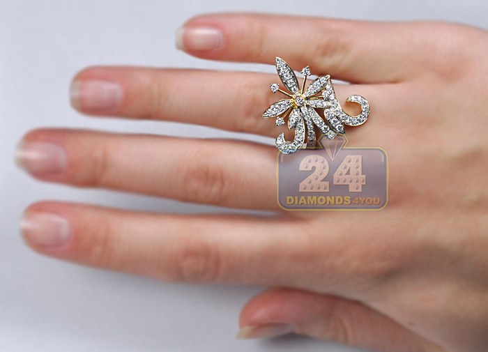 14K Yellow Gold 2.20 ct Diamond Womens Flower Cocktail Ring
