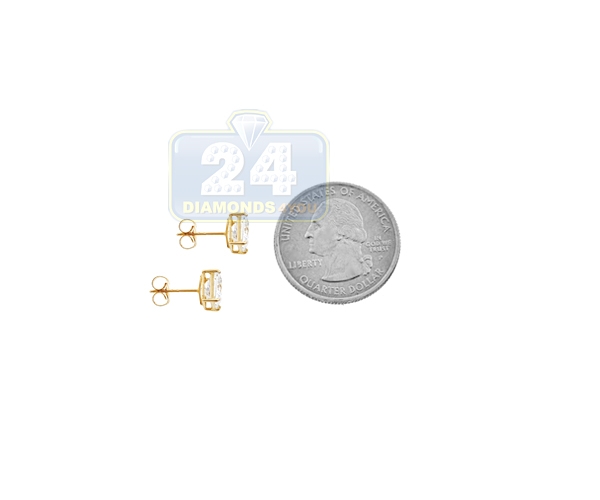 14K Yellow Gold 2.50 ct Princess CZ Push Back Stud Earrings