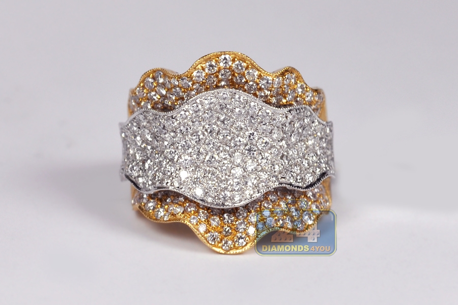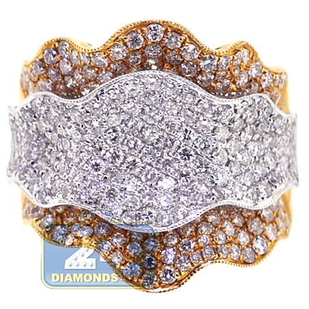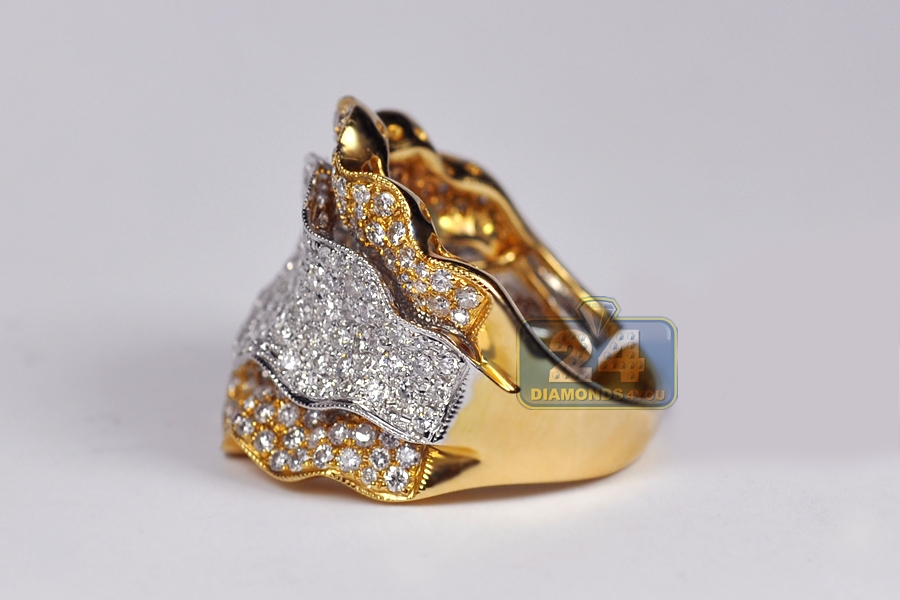 14K Yellow Gold 2.84 ct Diamond Womens Flower Ring
