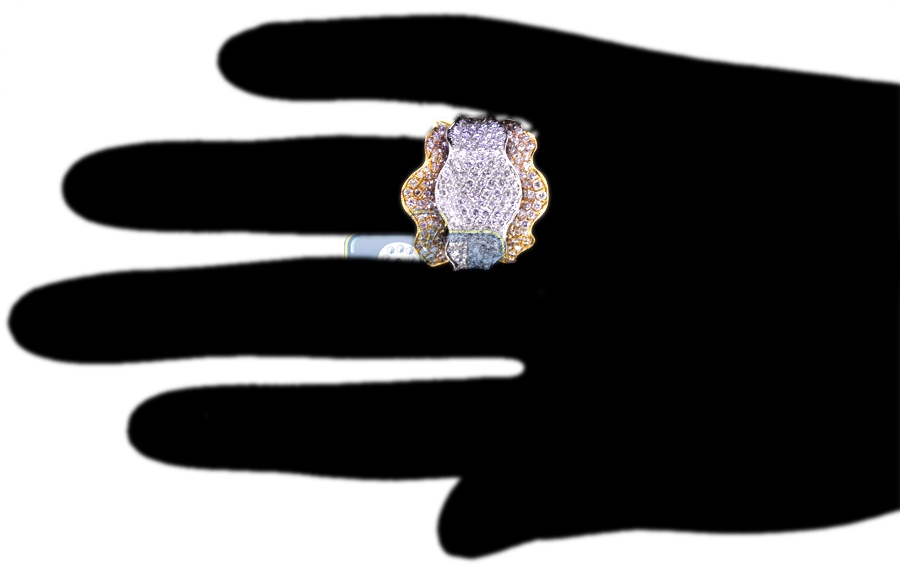 You are looking at the pretty diamond flower ring that is perfect for a variety of occasions! The piece of jewelry is handmade of warming 14k yellow gold, has highly polished finish, and expertly encrusted with icy white round brilliant-cut diamonds totaling 2.84 carats. This ring is like a sparkling firework on your finger!