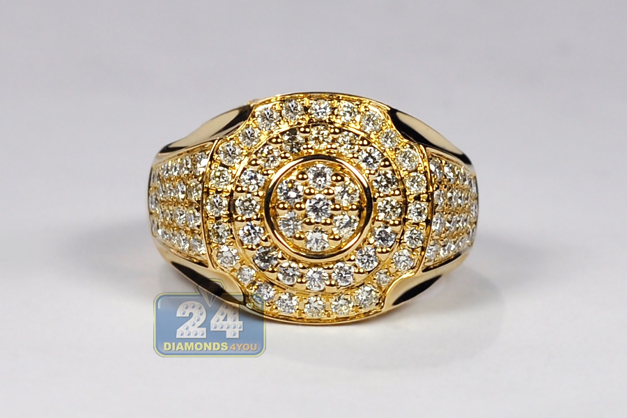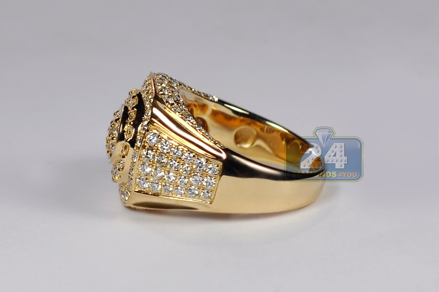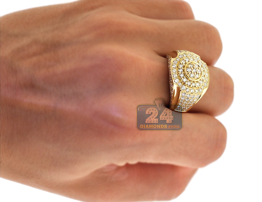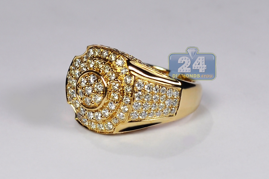 14K Yellow Gold 2.85 ct Diamond Signet Ring for Men