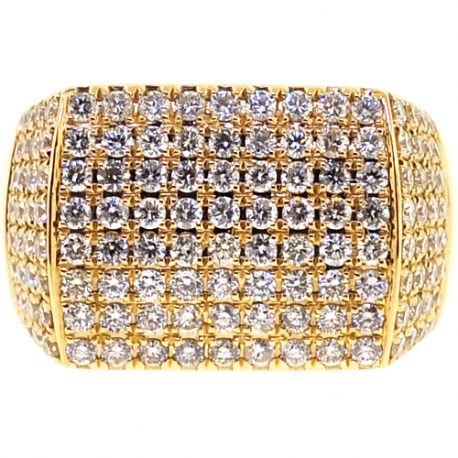 Making a bold statement, this diamond ring for men features a classic design of rectangular shape! Professionally made of warm 14k yellow gold, it's high-polished for shimmering smooth feel. The pinky ring is encrusted with icy white round brilliant-cut natural diamonds totaling 2.90 carats. Width of the head is 16 mm, and the shank measures 4 mm. If you're trying to find a piece of jewelry for special events, our men's diamond ring is a spectacular choice! Please note that this ring needs to be produced specially for you. And it takes 2 weeks to be shipped out. This jewelry cannot be returned or exchanged, but can be modified if needed.