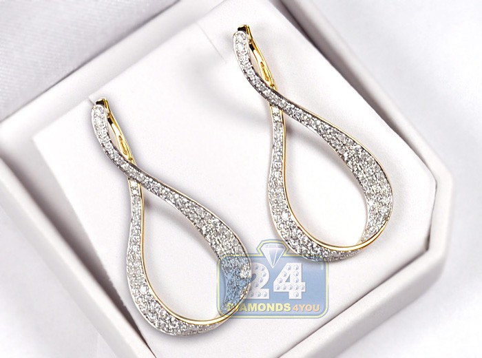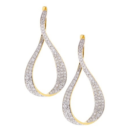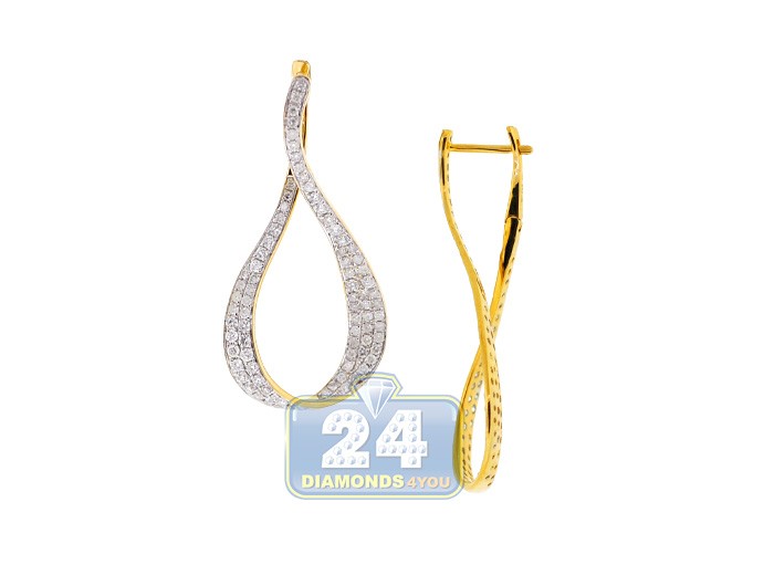 14K Yellow Gold 2.08 ct Diamond Womens Open Loop Earrings